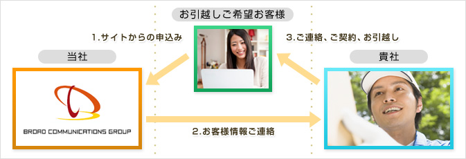 ブロードコミュニケーションズ・グループ株式会社 ホーム > 事業案内:引越し業専門支援サービス