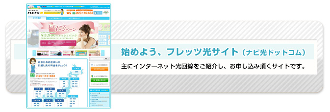 当社は通信インフラのコンサルティング業務を行う事を事業の柱としておりますが、もう一つには協力会社が運営するフレッツ光申込みサイト「ナビ光ドットコム」からの、お引越しをご希望されているお客様情報を元に、インターネットなどの回線と一緒にお引越しが出来るサービスを行なっております。